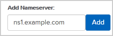 6. Navigate to Add Nameserver and enter our nameserver in the text field (for example, ns1.example.com). Then click the Add button. Repeat this to add our 2nd name server.