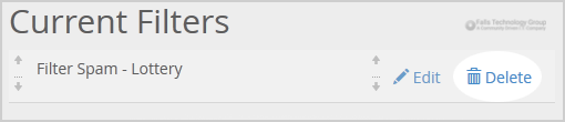 4. Under Current Filters, You can see all of your existing filters, Click on Delete next to the appropriate one.