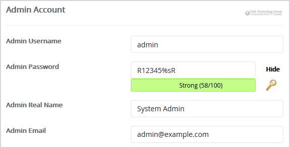 • Admin Username: Your new Contao username (for security reason do not use the Administrator or the Admin username.)