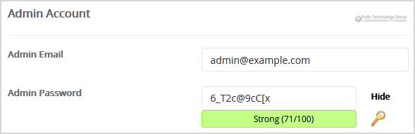 • Admin Username: Your new Fork username (for security reason do not use the Administrator or the Admin username.)