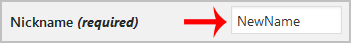 3. Locate Nickname and enter your new name.