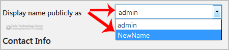4. In the option Display name publicly as, choose your newly added nickname from the drop-down menu.