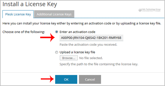 Step 4: Under Select your license type, should you have a license key, enter your Plesk Onyx license key or use a trial license by choosing Proceed with a full-featured trial license.