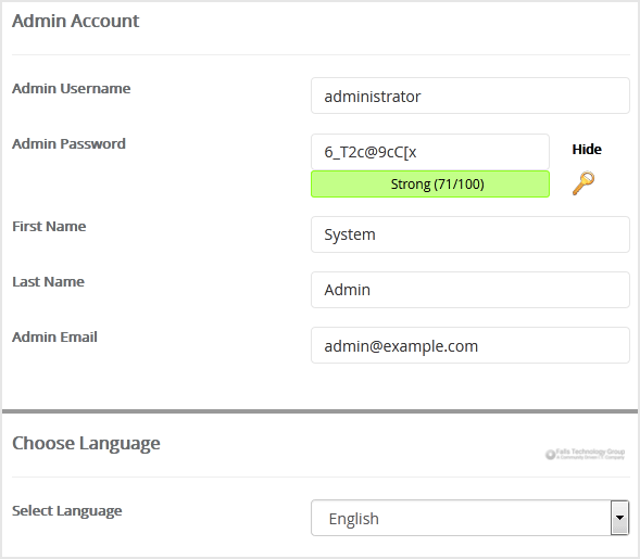 • Admin Email: Your e-mail address. (Useful for administrator account password reset, notification, etc.)