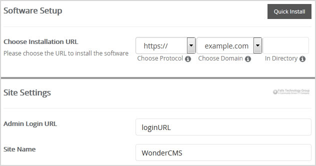 • Site Name: Enter the name of your website, such as WonderCMS.