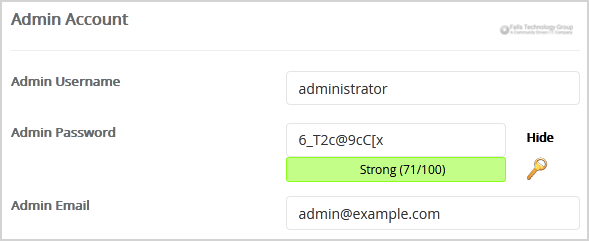 8. Under the Admin Account field, enter the following information: